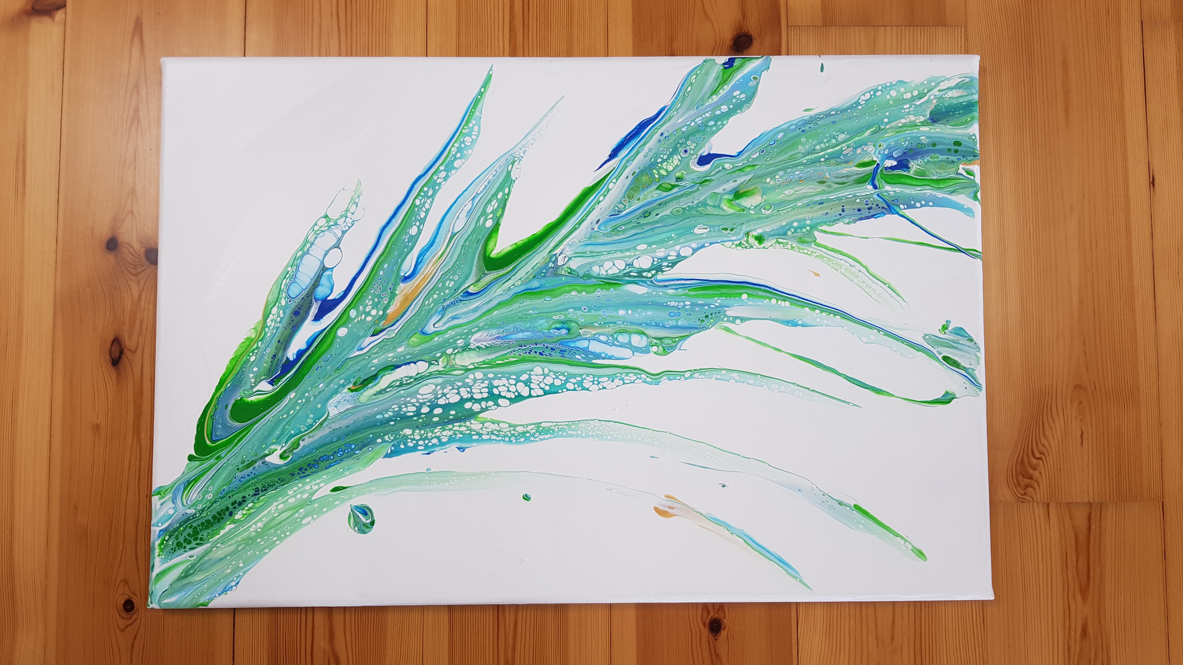 Dies war mein erster Versuch mit der Fluid Technik. Das Resultat erinnert mich persönlich an Aloevera, woher auch der Name rührt. Die ruhigen Farben passen zu stilvollem Ambiente.