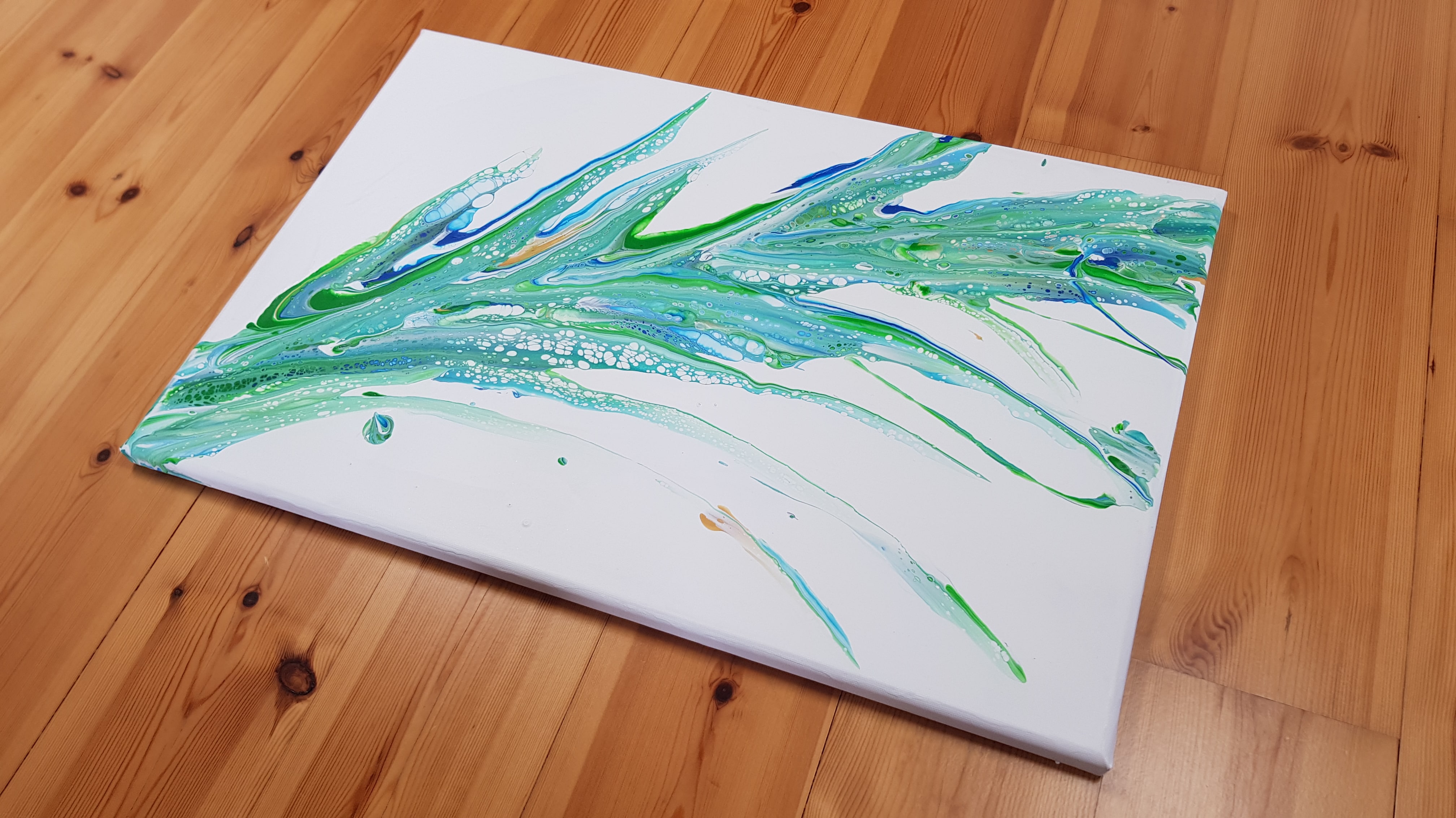 Dies war mein erster Versuch mit der Fluid Technik. Das Resultat erinnert mich persönlich an Aloevera, woher auch der Name rührt. Die ruhigen Farben passen zu stilvollem Ambiente.